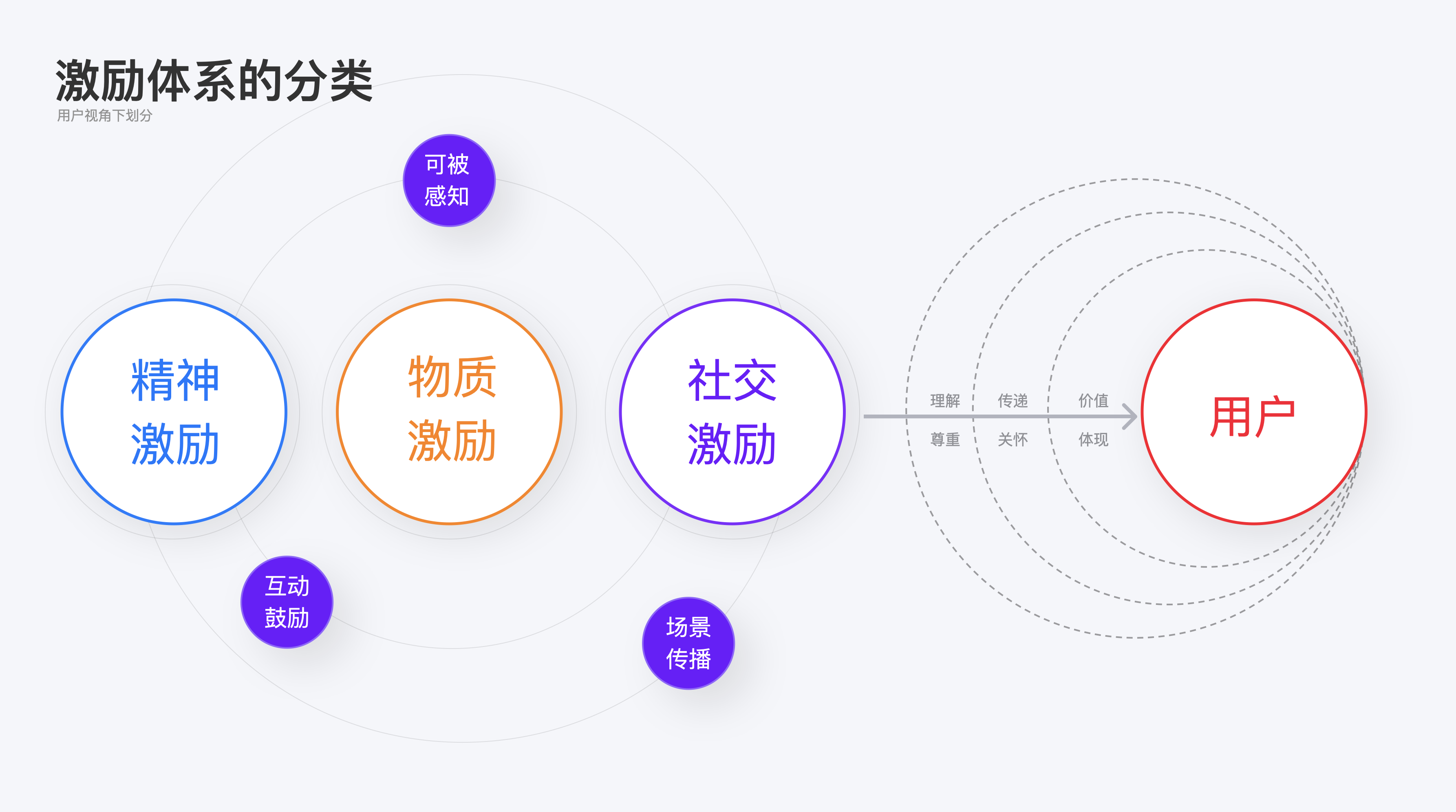 ?有些文章從產品表現形式出發將用戶激勵劃分為等級體系、勛章體系、積分體系、會員體系等,但這樣劃分概念容易交叉重疊,大部分等級體系里經常包含了積分,有些會員體系里還會嵌套勛章體系。因此,在分析各類產品和相關資料后,從激勵手段與用戶情感需求出發,可以將用戶激勵體系分為平臺精神激勵、物質利益激勵、社交情感激勵三種。