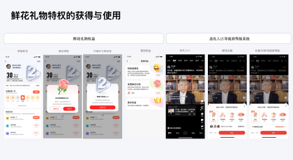 鮮花禮物特權方面:當用戶升級及完成任務的同時可領取該獎勵,我們采用用戶比較熟知的“授人鮮花,手有余香”的概念,等級越高可獲得更多鮮花,越能鼓勵作者,增進了創作者與忠實粉絲之間的關系。免費禮物是好看視頻的首創,雙向促進用戶與作者激勵,后續其他平臺也進行了功能跟進。在作者的帶動下,當用戶想給作者贈送鮮花時為了獲取更多的鮮花,也能導流到任務系統促進等級任務的完成。