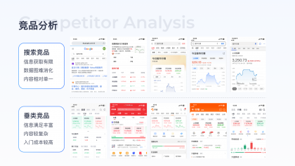 設計優(yōu)化思路:結(jié)合競品優(yōu)劣勢可得出,需要在提高信息豐富度的同時,考慮小白用戶的入門成本,用更可視化及簡潔的設計語言輔助用戶快速獲取有效需求信息。