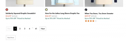 據(jù)我所知,無限流是由播客《Your Undivided Attention》的聯(lián)合主持人Aza Raskin發(fā)明的。他在2006年為一家名為“人性化”的用戶界面公司工作,那個時候人們還在使用“分頁”的設計,而他則想創(chuàng)建一種能夠取替分頁的方法。分頁是將內(nèi)容切割成幾個頁面,通過底部的導航欄頁簽選擇可以跳轉(zhuǎn)的頁面,我們現(xiàn)在仍然能在一些電商網(wǎng)頁版中看到這種設計的蹤影,如下圖所示。