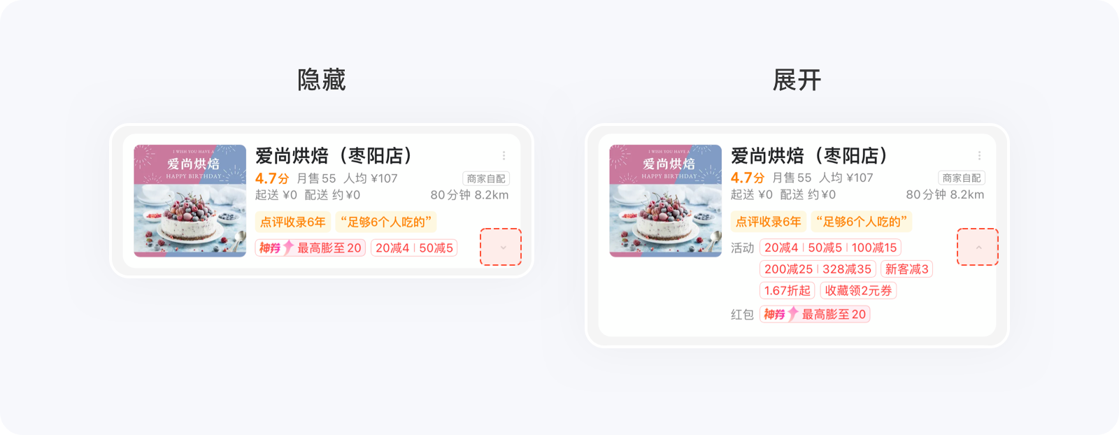 與刪除不同的是,隱藏并沒有刪減選項的數量,只展示部分常用、高頻的選項,去除其他信息的干擾,方便用戶快速做出決策,而將其他不常用、低頻選項隱藏起來,在需要時系統自動展示、或用戶手動喚出。其實,不管是交互四策略中的隱藏、還是希克定律中的隱藏,其作用都是通過暫時性地減少信息數量來提升用戶操作效率。