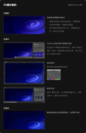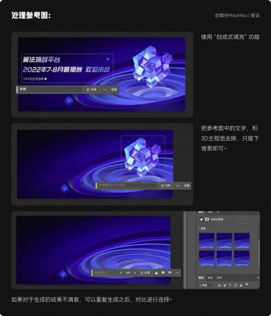 生成的素材我們需要先用 PS 處理一下,背景素材需要處理的地方:主視覺多余的部分需要刪掉、色調(diào)處理、圖片比例修改。