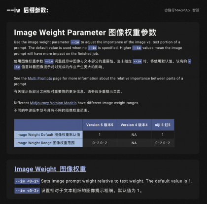 這個時候不要慌,也不要著急去改關(guān)鍵詞,我們只需要添加上一個神奇的后綴“--iw 2”,官方文檔的翻譯中,這個參數(shù)叫做“圖像權(quán)重參數(shù)”,用來調(diào)整關(guān)鍵詞中文本與參考圖的相似度,默認值為 1 ,范圍為 0~2 ,值越高,生成的圖與原圖更像,注意在 V5 和 niji 模型中使用才能生效。