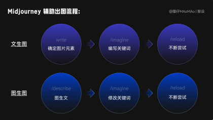 文生圖:顧名思義,需要自己腦暴出關(guān)鍵詞出圖,再通過修改關(guān)鍵詞,不斷踐行嘗試出圖。圖生圖:在有參考圖的情況下,用 /describe 圖生文命令,讓系統(tǒng)直接生成關(guān)鍵詞,再通過修改關(guān)鍵詞,不斷進行嘗試;我們先使用這種方式生成背景素材。