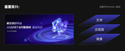 這一步考驗的是設(shè)計師的審美和手活,我們需要把背景和主視覺素材,進行視覺合成,其實也非常簡單:這里我定的主要色調(diào)是藍色+青色的光感,首先需要將色調(diào)整體統(tǒng)一;然后想要表現(xiàn)出玻璃質(zhì)感的通透,我們需要加上一些光感;最后文字排版出圖即可~