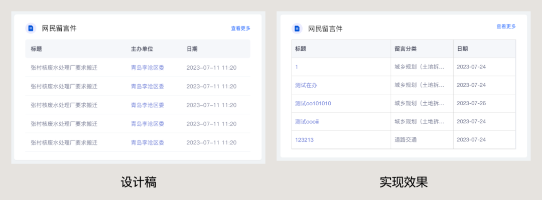 這就導致,如果前端開發使用了一款前端框架,那么設計稿中使用的組件是這套框架中帶的,那就直接調用這個樣式,只要功能實現出來,樣式上能不改那就盡量不改。包括圖表也是,圖表也基本使用第三方的框架,所以實現出來和設計稿最多就是顏色接近,其它哪里都不像,比如下面的真實案例。