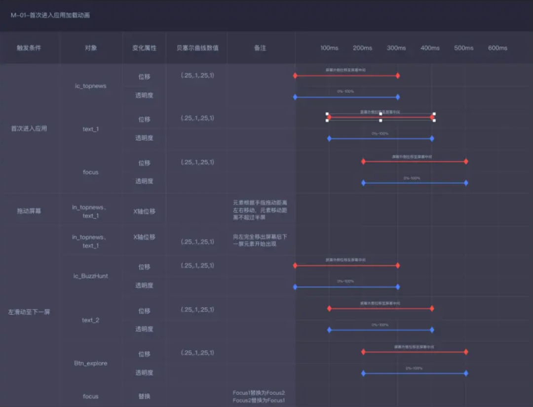 動效的標注需要非常具體,要有針對象的時間、屬性值、緩動效果做出準確的描述。