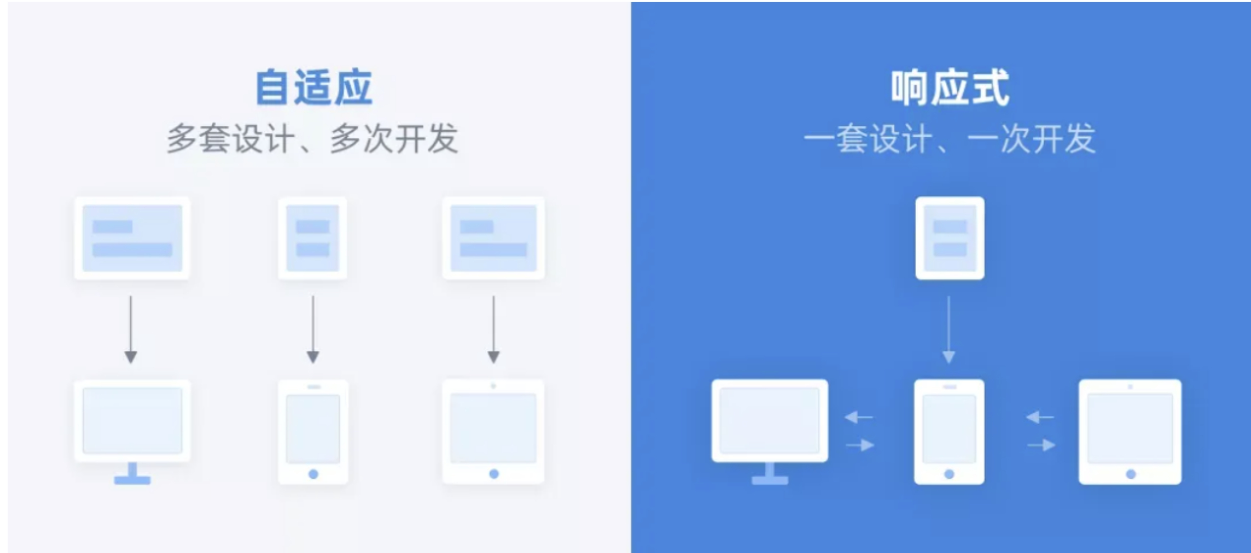 自適應是根據設備分辨率的不同,分別為不同的屏幕進行布局定義,創建多個固定布局,即“多套設計,多套開發”。適用于閱讀類交互多的網站,如知乎官網。