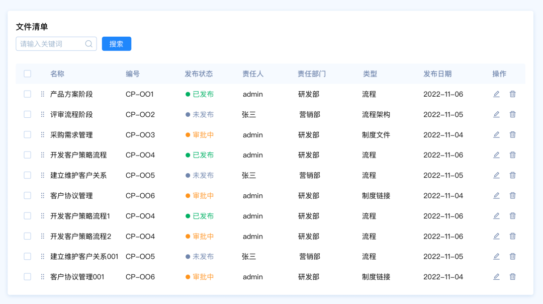 需求背景:客戶A想要快速篩選文件清單中發(fā)布狀態(tài)為“審批中”的數(shù)據(jù),希望能夠直接看到文件的狀態(tài)類型,快速選擇類型。