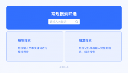 常規(guī)的搜索篩選不難理解,即常見(jiàn)的搜索框,根據(jù)輸入文本關(guān)鍵詞進(jìn)行模糊搜索或者根據(jù)記憶準(zhǔn)確輸入完整的信息,精準(zhǔn)搜索。文本關(guān)鍵詞搜索需要通過(guò)用戶的記憶來(lái)完成,只有當(dāng)用戶對(duì)需要搜索的內(nèi)容(關(guān)鍵詞)有記憶才能完成搜索篩選,搜索的結(jié)果范圍根據(jù)關(guān)鍵詞的精準(zhǔn)度而定。