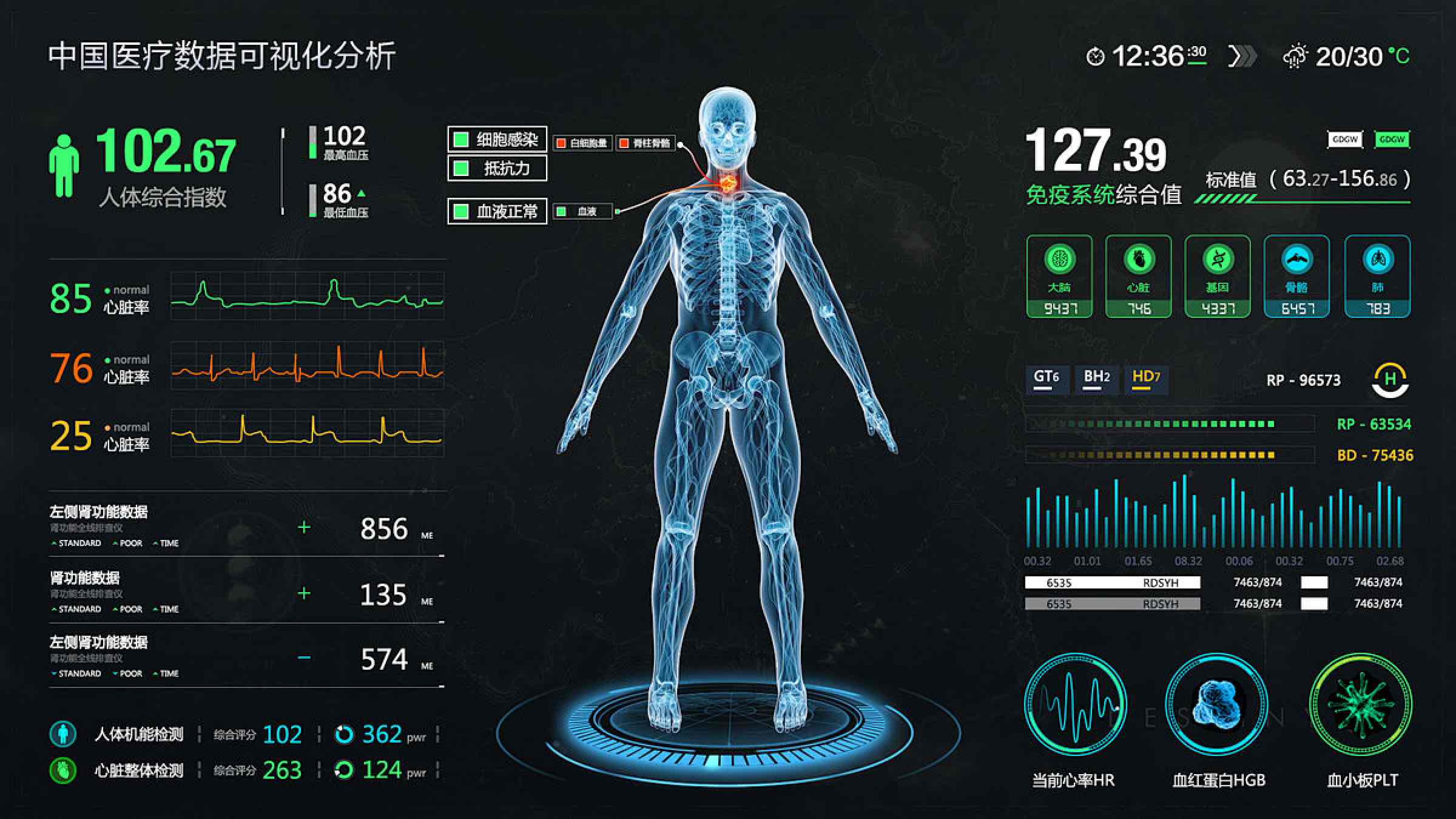 醫(yī)療數(shù)據(jù)來(lái)源廣泛且復(fù)雜多樣,涵蓋醫(yī)院信息系統(tǒng)(HIS)中的患者基本信息、電子病歷系統(tǒng)(EMR)里的詳細(xì)診療記錄、醫(yī)學(xué)影像存儲(chǔ)與傳輸系統(tǒng)(PACS)的影像資料,以及各類(lèi)醫(yī)療物聯(lián)網(wǎng)設(shè)備實(shí)時(shí)采集的生命體征數(shù)據(jù)等。構(gòu)建可視化醫(yī)療大屏 UI 架構(gòu)的第一步,便是打造強(qiáng)大的底層數(shù)據(jù)整合層。通過(guò)專(zhuān)業(yè)的數(shù)據(jù)網(wǎng)關(guān)與中間件,運(yùn)用 ETL 技術(shù),將這些分散、異構(gòu)的數(shù)據(jù)進(jìn)行匯聚、清洗與標(biāo)準(zhǔn)化轉(zhuǎn)換。例如,將不同設(shè)備采集的心率數(shù)據(jù)統(tǒng)一格式,去除重復(fù)或錯(cuò)誤錄入的患者病歷信息,確保數(shù)據(jù)的準(zhǔn)確性與一致性,為上層可視化展示筑牢根基。