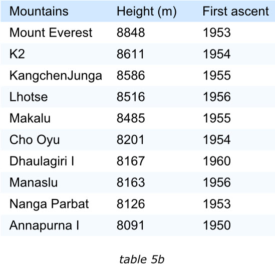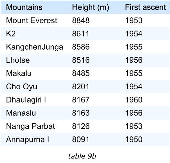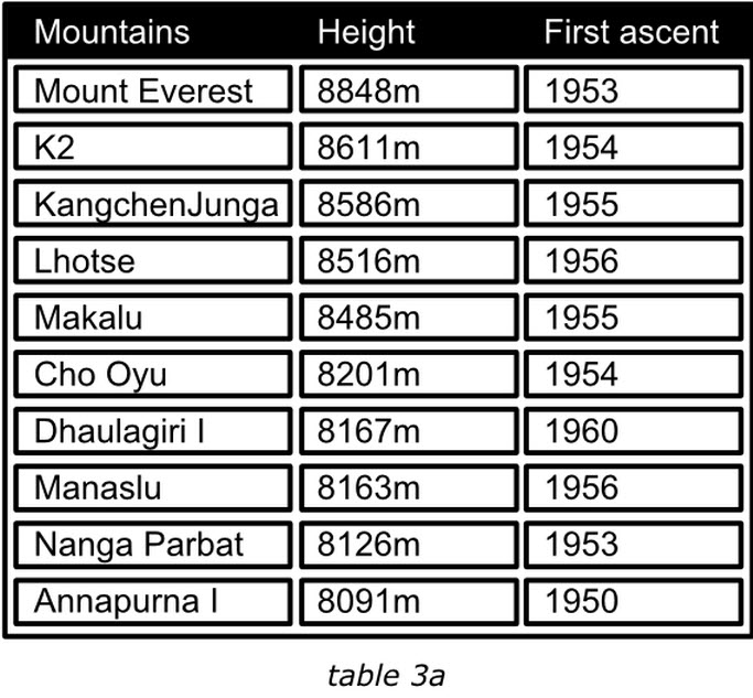 然而,如果讀者實際關(guān)注的是山峰首次登頂?shù)臅r間,那么在左面的表格中,讀者就需要費一番力氣去找到第一個被登頂?shù)纳椒?。顯然右側(cè)的表格排序方式將會更合理。