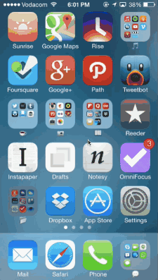 Apple iOS系統(tǒng)的UI設(shè)計中就很好的利用了這些有意義的過渡動效。下面的案例中,用戶點擊文件夾或者APP,圖標(biāo)當(dāng)大擴展到整個屏幕,展現(xiàn)出細(xì)節(jié)和詳情。