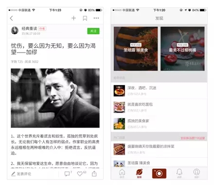 作為一個(gè)「交流故事,溝通想法」的的寫作平臺(tái)App,簡(jiǎn)書為了優(yōu)化閱讀體驗(yàn),選擇了思源黑體作為內(nèi)嵌字體,使用戶發(fā)布的不管是簡(jiǎn)體中文、繁體中文、還是日文韓文,都能有比較理想的表現(xiàn)。食色的產(chǎn)品概念是和「生活家」們一起,發(fā)現(xiàn)與分享城市中的美食,所以選擇了細(xì)膩精致的方正蘭亭纖黑作為主要的界面字體。用戶第一次使用,就能感受它與其他產(chǎn)品在氣質(zhì)上的不同。