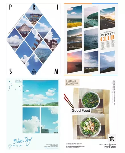 此外,對(duì)于用戶自己生產(chǎn)內(nèi)容的App來說,把用戶的圖片和文字內(nèi)容合成在一個(gè)排版好的模版里面,再分享出去,也是一個(gè)能展現(xiàn)設(shè)計(jì)水平的方式。天天P圖的海報(bào)拼圖,就是一個(gè)功能化后的海報(bào)式分享。用戶將自己拍攝的照片,添加到設(shè)計(jì)好的海報(bào)模版中,可以修改相應(yīng)的主題和文案,程序還能自動(dòng)識(shí)別照片時(shí)間、拍攝地點(diǎn),只要簡(jiǎn)單的操作就能組合出一張屬于自己的海報(bào)。通過海報(bào)拼圖分享出去的照片,是不僅是通過設(shè)計(jì)師設(shè)計(jì)的模版來提升用戶照片逼格的成果,也是用戶氣質(zhì)與產(chǎn)品氣質(zhì)交織后的成果。