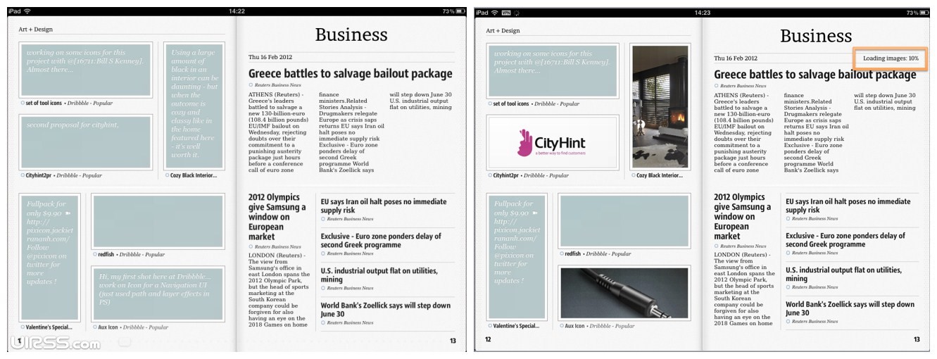 如Flipboard打開應用時,cover從舊版的固定圖片變為你訂閱內容的圖片,在第一時間建立起閱讀內容和用戶的聯系,在等待過程的同時閱覽正在更新的信息。
