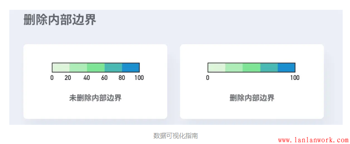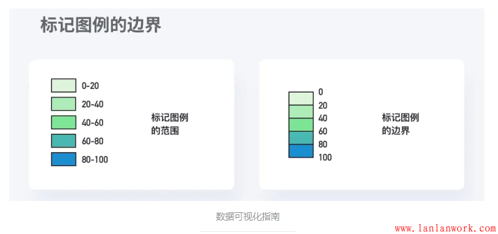 在需要用多種顏色做區(qū)分的圖表中,有時(shí)可以通過(guò)標(biāo)記圖例邊界而不是標(biāo)記圖例范圍的方式,來(lái)提高觀眾的閱讀效率。
