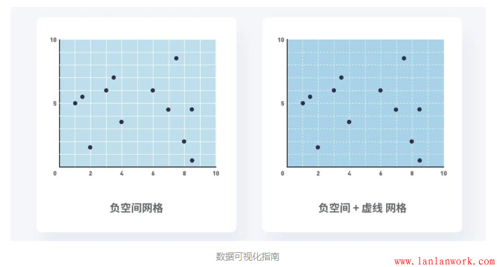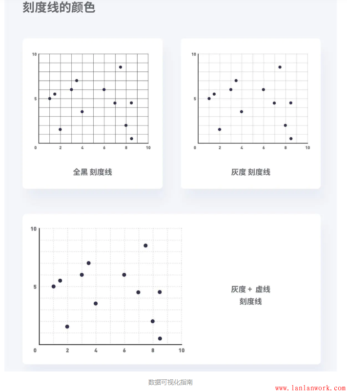如果確定要使用刻度線,則需要使它們比作為實(shí)際數(shù)據(jù)的點(diǎn)或者線條要層級(jí)低。因?yàn)檫@些刻度線也屬于背景的一部分。