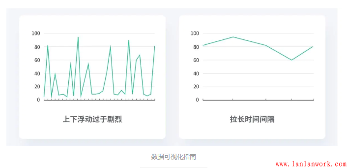 如果你的折線上下浮動(dòng)過(guò)于劇烈,那么你應(yīng)該嘗試?yán)L(zhǎng)時(shí)間間隔,比如不每天采樣而以周為單位來(lái)采樣。觀眾們不會(huì)去閱讀鋸齒狀的線條,或者說(shuō)他們不會(huì)喜歡這樣的圖表。