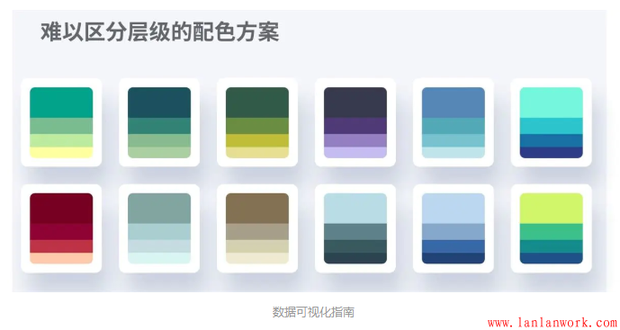 雖然這些配色方案同樣絢麗多彩,但是他們不能靈活應(yīng)對(duì)圖表中復(fù)雜的信息層級(jí)。
