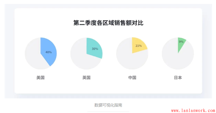 當(dāng)我們將餅圖分拆開(kāi)來(lái)設(shè)計(jì)時(shí),將他們?cè)O(shè)置為同一起點(diǎn),我們可以清晰的對(duì)比出數(shù)據(jù)的大小,但嚴(yán)格意義上來(lái)講這已經(jīng)不算是餅圖了。