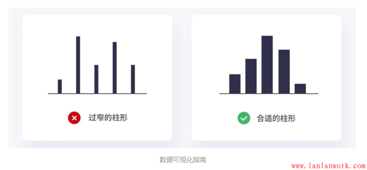 過(guò)寬的柱會(huì)讓圖表看起來(lái)笨重,盡量保持柱的輕薄,這樣可以保持優(yōu)雅的外觀,但是太薄了會(huì)讓用戶很難對(duì)數(shù)據(jù)進(jìn)行比較。
