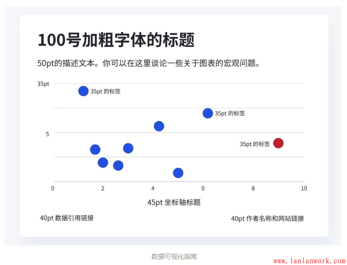 圖表中的字體數(shù)量以及字體大小的種類加起來(lái)不要超過(guò)3種(標(biāo)題和副標(biāo)題除外)。通常來(lái)說(shuō),我們?cè)谥谱鲿r(shí)會(huì)把注釋和坐標(biāo)軸標(biāo)簽設(shè)置為兩種字體樣式,所以只需要確保將這兩者統(tǒng)一起來(lái),那么就可以保證我們的圖表不超過(guò)3種字體樣式。